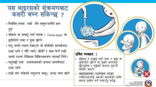 मान्छेभन्दा अलि टाढा गएर वा रुमालले मुख छोपेर खोक्ने, हाच्छ्युं गर्ने गरौँ ।