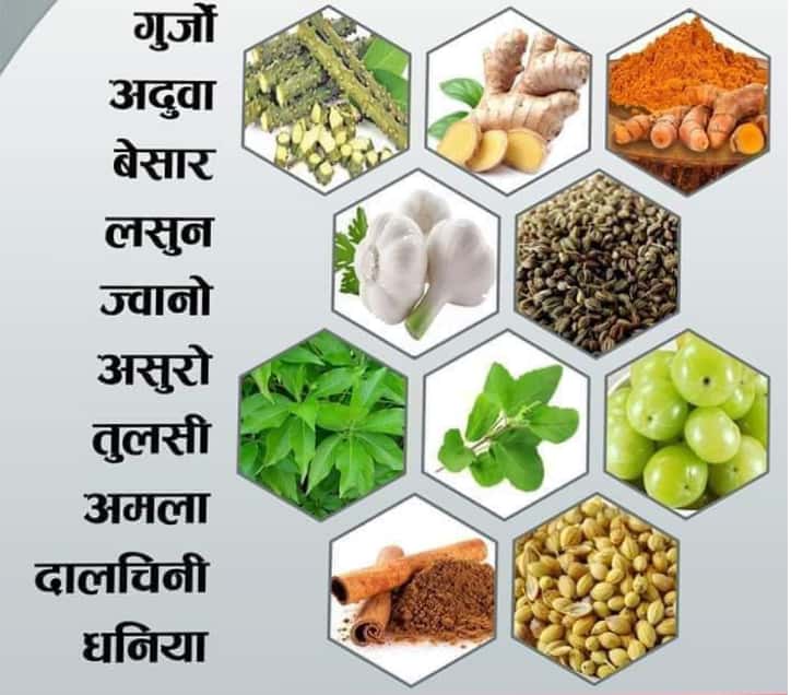 यस परिपेक्षमा यो रोगलाई जित्नको लागि हाम्रो प्रतिरक्षा प्रणालीलाई मजवुत पर्नुपर्ने हुन्छ। प्रतिरक्षा प्रणालीलाई बलियो बनाउन र कोरोना संक्रमण लाइ रोक्न निम्न लिखित जडिबुटी हरूलाई निम्न लिखित विधिले उपयोग गर्न सकिन्छ।