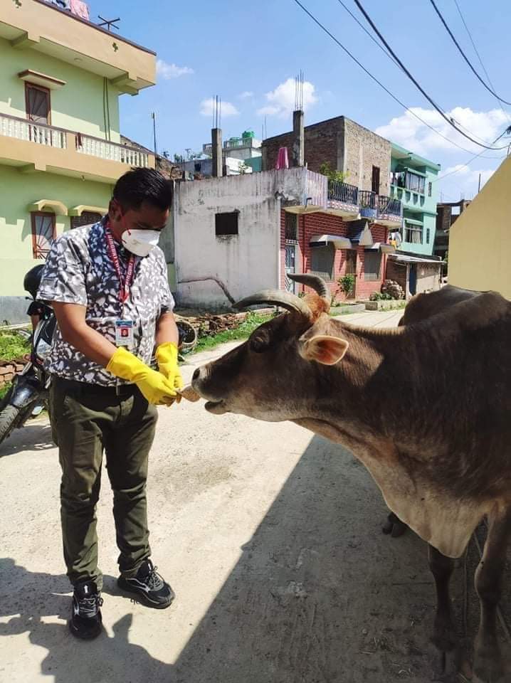 समाजका अध्यक्ष कमल चौगाईँको नेतृत्वमा वीरगंजको विर्ता, लक्ष्मीनारायण टोल, आदर्शनगर, पानीटंकी लगायतको क्षेत्रका सडकमा भौतारिएका कुकुर, गाई तथा पशुचौपायालाई आहारा खुवाएको अध्यक्ष चौगाईले जानकारी दिनु भयो।