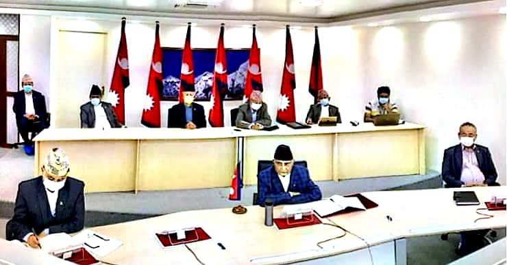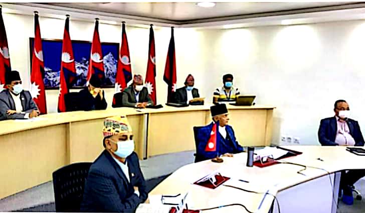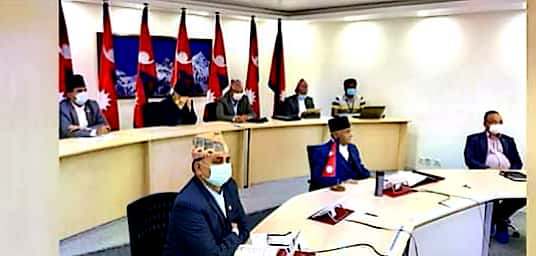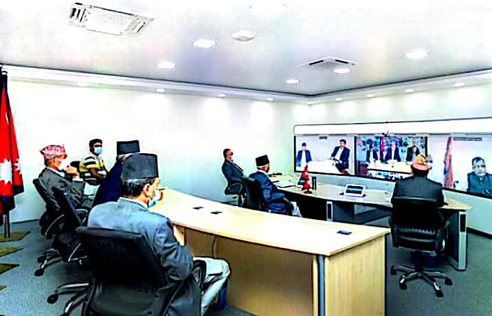 प्रधानमन्त्री ओलीद्वारा आयोजित भिडियो कन्फरेन्स बिहान ११ः३० देखि अपरान्ह ३ः४० बजेसम्म सिहदरबारस्थित एक्सन रूमबाट ४ घण्टाभन्दा बढी अवधिसम्म संचालन भएको थियो ।