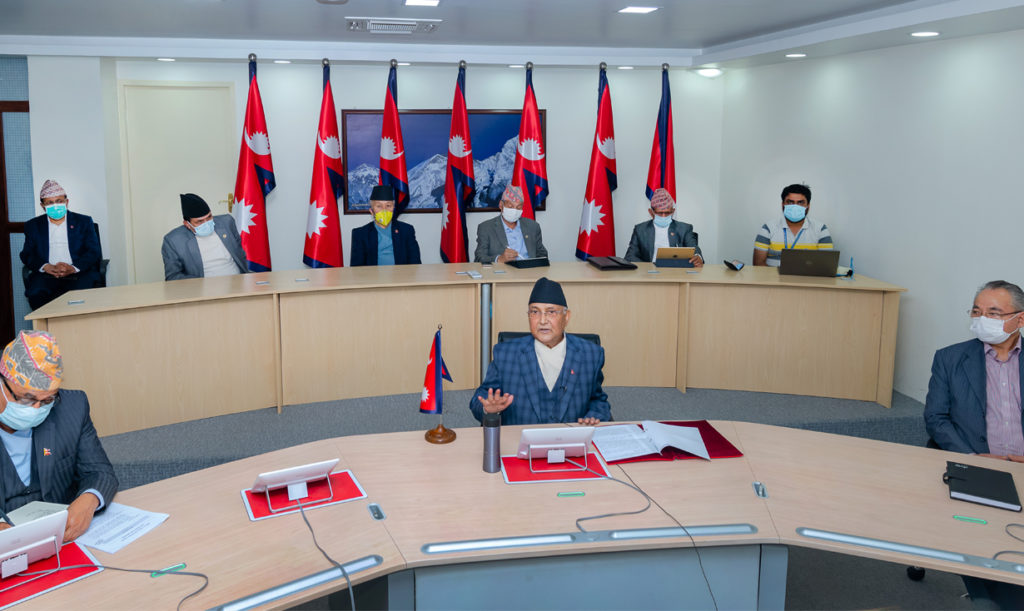सिंहदरबारस्थित ‘एक्सन रूम’बाट प्रधानमन्त्री ओलीले छलफल सञ्चालन गर्दै यसबीचमा रोकथामका लागि भएका प्रयासहरू सकारात्मक नै रहेको र यसलाई अझ समन्वयात्मक ढंगले अघि बढ्न जरूरी रहेको बताए ।