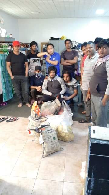 एकातर्फ नोभेल कोरनाका कारण २४ घन्टे कर्फु भने अर्कातिर कम्पनीले खान समेत पैसा नदिदाँ भोकै पीडित परेका नेपालीहरुको समस्या एनआरएनए आरसिसि तबुकले थाह पाए पछि कर्फ्युको समयमा आफुलाइ जोखिम मोल्दै भए पनि पीडित नेपाली श्रमिकहरुलाइ चामल, नुन तेल, आलु प्याज जस्ता खाद्यान्न समाग्री उपलब्ध गराएको कुरा आरसिसि तबुकका अध्यक्ष अर्जुन थापाले जानकारी दिए ।