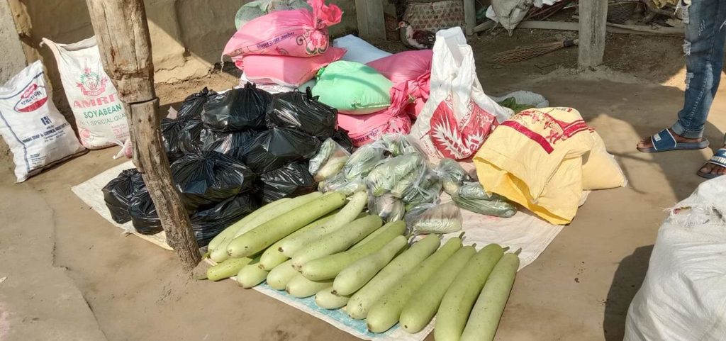 चामल २० किलो, दाल २ किलो , खानेतेल १ लीटर , हरियो तरकारी ५ किलो , स्वाबीन १ किलो ,आलु २ किलो ,प्याज २ किलो ,नुन १ पकेट, साबुन २ वटा , लौका १ वटा रहेको छ।