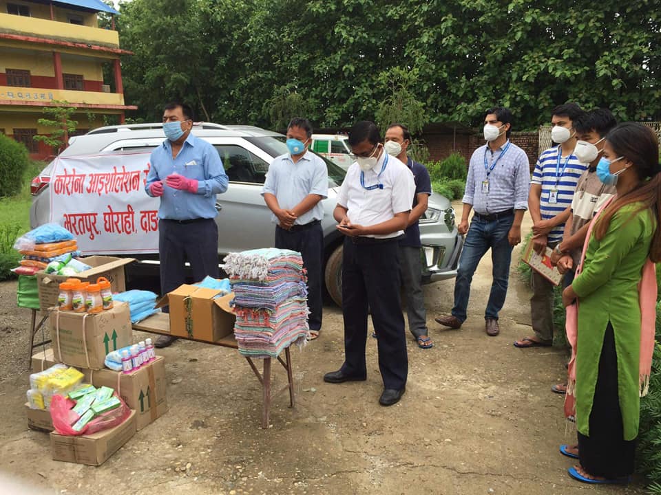 सो सामग्री आईसोलेसन सेन्टर भरतपुरमा उपचाररत कोरोना संक्रमित विरामीहरुका लागि प्रयोग गरिने छ ।अहिले नेपाल कम्युनिष्ट पार्टी (नेकपा) दाङ जिल्ला सचिव तुलसीराम पुन (शुवास), बंगलाचुली गाउँपालिकाका प्रमुख प्रशासकीय अधिकृत नेव बहादुर वली लगाएको पहलमा अहिले बंगलाचुली गाउँपालिकालाई विभिन्न सामग्री सहयोग जुट्ने क्रमजारी छ ।