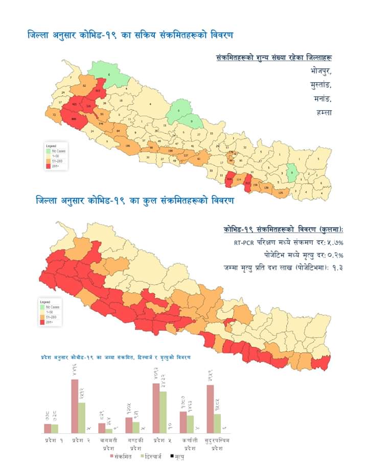 नेपालमा संक्रमित शून्य हुन पुगेका जिल्लाहरुमा भोजपुर, मुस्ताङ, मनाङ र हुम्ला रहेका छन ।