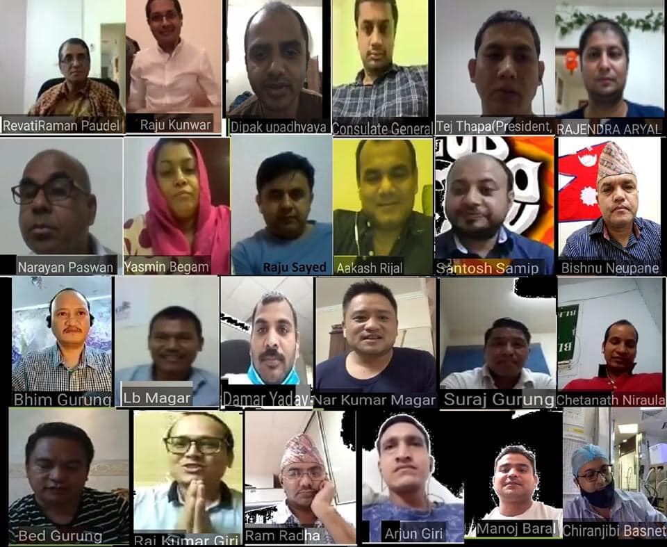 साउदी अरब | साउदी अरबको पश्चिमी क्षेत्रमा रहेको नेपाली माहाबाणिज्य दुताबास जेद्धाका माहाबाणिज्यदुत रेवती रमण पौडेल र श्रम सहचारी राजु कुँवरको कार्यकाल समापन भए संगै यहाँ स्थित नेपाली समुदायहरुले संयुक्त रूपमा १३ जुलाई २०२० का दिन एक कार्यक्रम आयोजना गरी बिदाई गरेका छन्। एनआरएनए एनसीसी साउदीका कोषाध्यक्ष सन्तोष लुईँटेलको संचालन रहेको उक्त कार्यक्रम कोरोना माहामारिको कारण भौतिक उपस्थित जनाएर बिदाइ गर्न नसकिने भएकोले बिद्युतिय माध्यम तथा सामाजिक संजाल जूम प्रयोग गरी भिडियो कन्फरेन्सबाट भएको थियो।