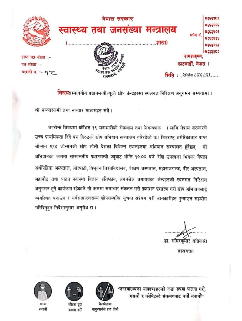यसअघि आजै प्रधानमन्त्री देउवाले स्वास्थ्य मन्त्रालय, मन्त्रालयका सचिव तथा स्वास्थ्य विभागलाई खोप खरीदको प्रक्रियालाई चुस्त पार्न सिंहदरवार बोलाएर निर्देशन समेत दिएका थिए ।