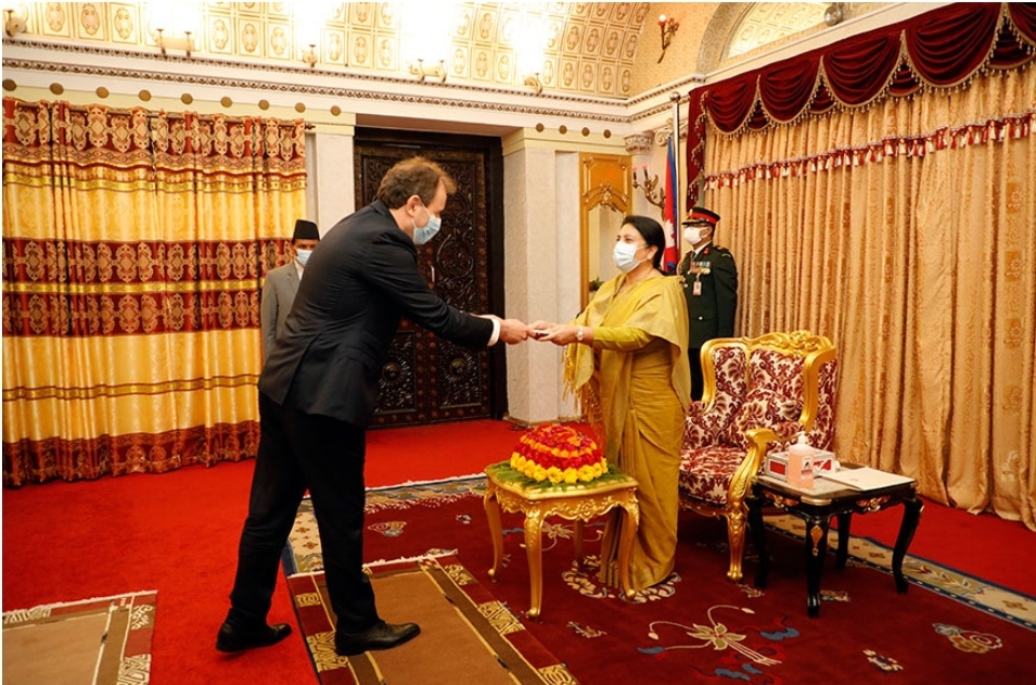 १४ असोज, काठमाडौं । राष्ट्रपति विद्यादेवी भण्डारी समक्ष चार देशका राजदूतहरुले आ-आफ्नो ओहदाको प्रमाणपत्र बुझाएका छन् ।