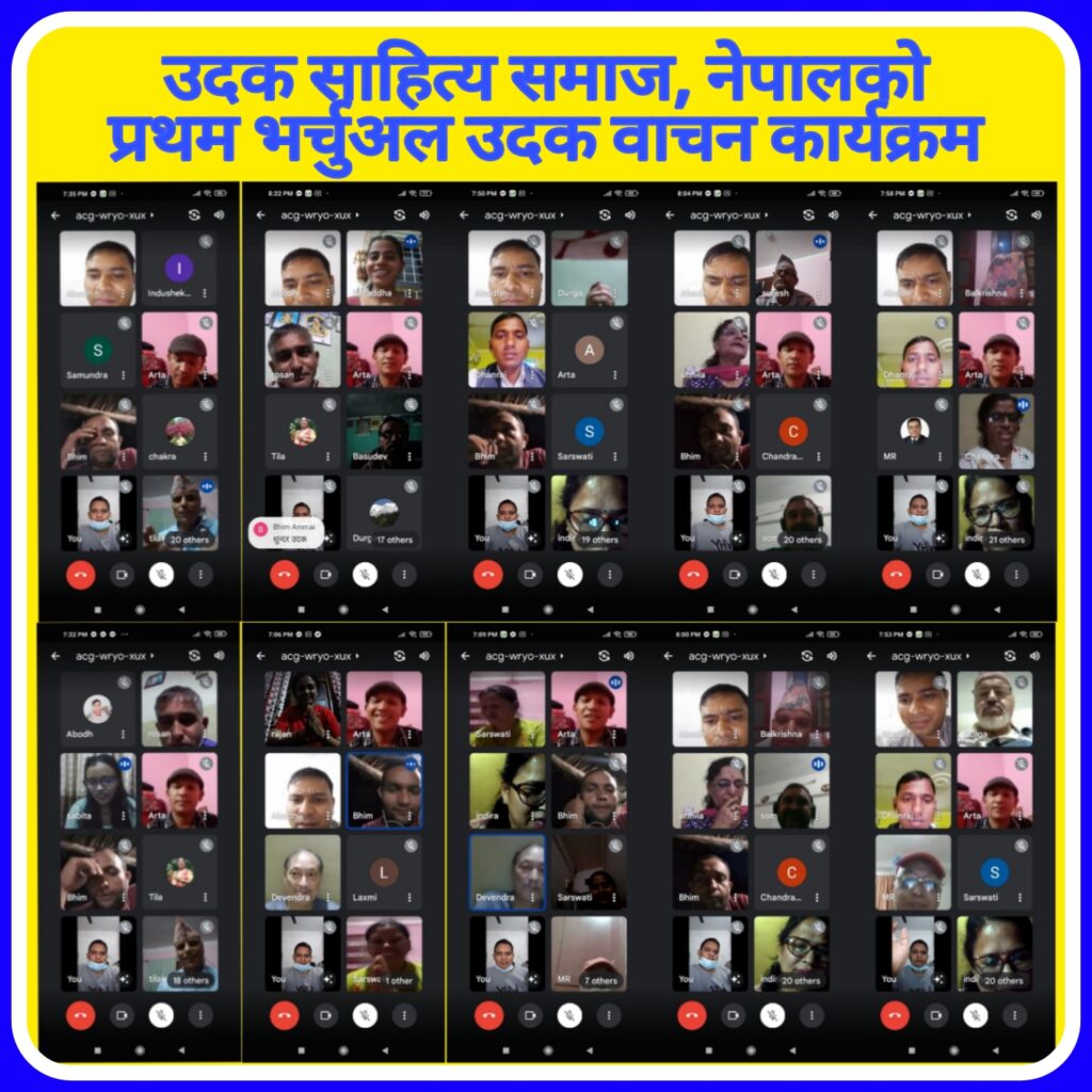 उदक साहित्य समाज नेपालको आयोजनामा प्रथम उदक वाचन कार्यक्रम मिति २०७८ साल कार्तिक महिनाको ७ गते आइतबारका दिन सम्पन्न भएको छ ।