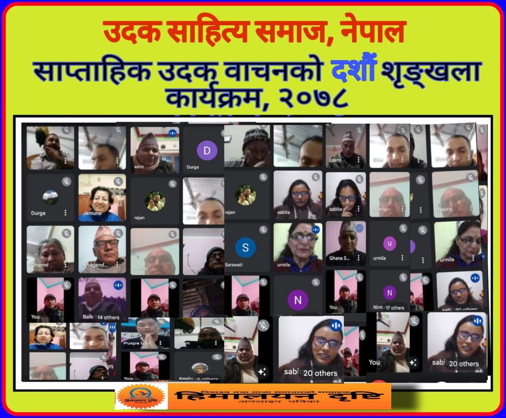 उदक साहित्य समाज नेपालको साप्ताहिक उदक वाचन कार्यक्रमको दशौँ शृङ्खला सम्पन्न भएको छ ।