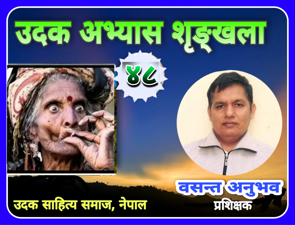 काठमाडौ, १० बैशाख। साप्ताहिक उदक लेखन शृङ्खलाको ४८औँ भाग शनिबार सम्पन्न भएको छ । उदक साहित्य समाज, नेपालले उक्त कार्यक्रमको आयोजना गरेको थियो। उक्त शृङ्खलामा नेपाल लगायत विश्वका ६६ जना उदक स्रष्टाहरूको सहभागिता रहेको उदक लेखन शृङ्खलाका प्रशिक्षक एवं उदक साहित्य समाजका उपाध्यक्ष वसन्त अनुभवले बताउनुभयो ।