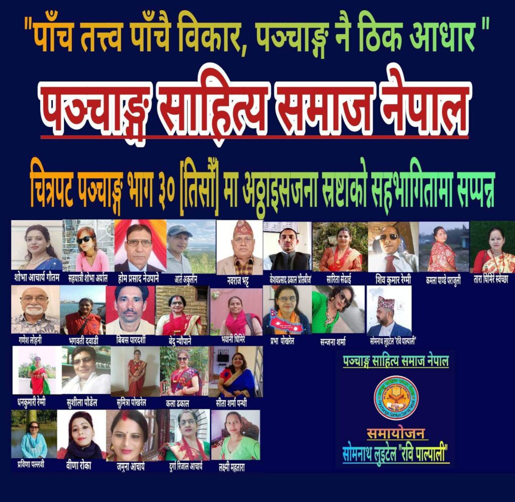 आदरणीय पञ्चाङ्गका अनुरागी  एवम् पञ्चाङ्ग स्रष्टाज्युहरू हार्दिक नमस्कार  ” पञ्चाङ्ग साहित्य समाज नेपाल” को आधिकारिक दर्ता पछिको ३० [तिसौँ]  चित्रपटमा छौं।