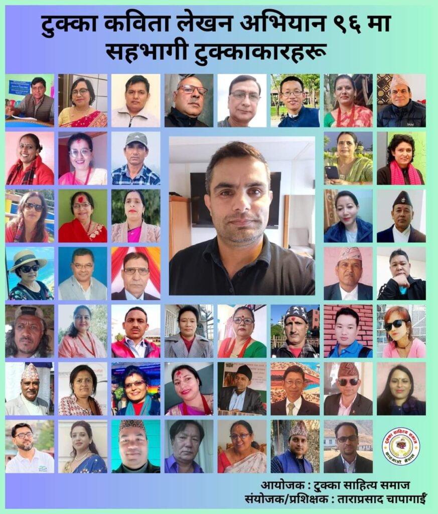 टुक्का पाठशालामा भर्च्युअल माध्यमबाट सञ्चालन भएकाे उक्त कार्यक्रमकाे संयाेजन / प्रशिक्षण टुक्का साहित्य समाजका अध्यक्ष ताराप्रसाद चापागाईँले गर्नु भएकाे थियाे ।