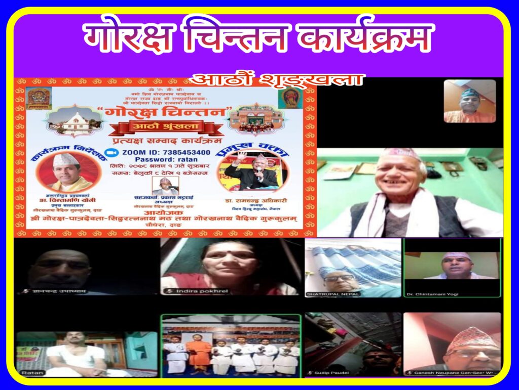 घाेराही उप महानगर पालिकाको चौघेरामा अवस्थित प्राचीन मठ गाेरक्ष पात्रदेवता सिद्ध रत्ननाथ मठमा संचालनमा रहेकाे गाेरखनाथ वैदिक गुरुकुलद्वारा संचालित जुम भर्चुअल कार्यक्रम ‘गोरक्ष चिन्तन’ मा उक्त कुरा बताएका हुन ।